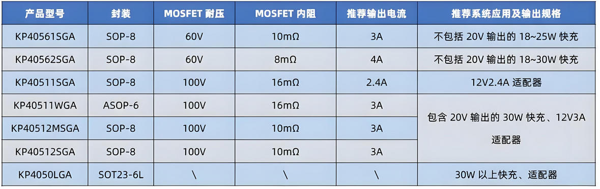 | KP4050LGA | SOT23-6L | ±0.8 A / ±5 A | 180 V 耐压,支持 High/Low Side | 快充、工业电源 |