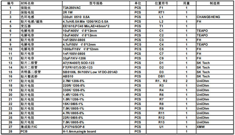 注:量大可换同步整流LP3588CSF,效率再提3%,成本加¥0.15。