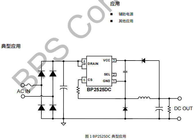 ACin → 1 A/500 V整流桥 → 4.7 μF/400 V电解 → BP2525DC DRAIN;
