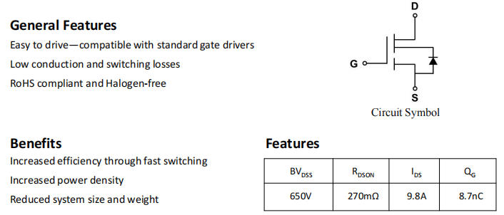 增强型 GaN 需要 -3 V~-5 V 负压关断,辅助供电、负压电荷泵都会吃掉 0.5 %~1 % 的效率。CE65H270TOEI 为耗尽型,VGS(th) = -3.3 V,关断只需 0 V,驱动电路直接省掉负压轨,控制器可选 9 V/12 V 自举方案,BOM 立刻减少 4 颗小信号 MOS 与 2 颗电解。