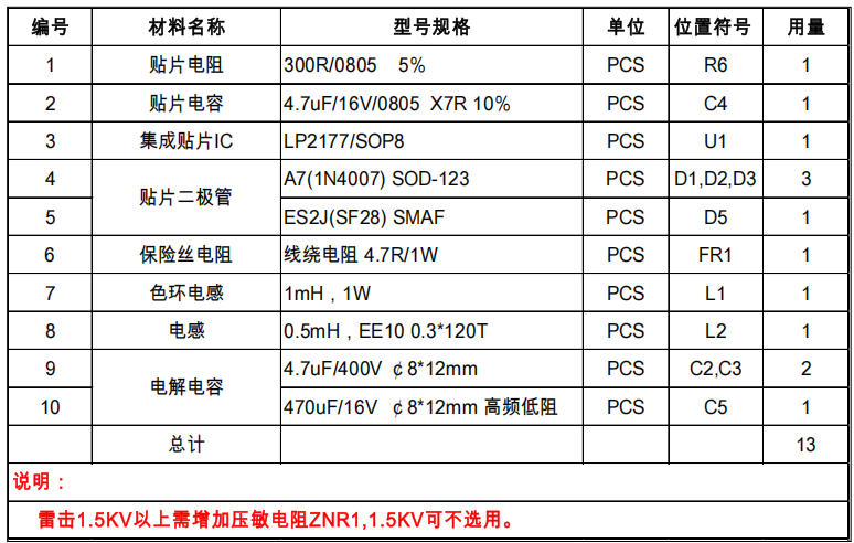 浪涌:L-N ±1 kV,无需压敏即可通过;±2 kV时并471KD07;