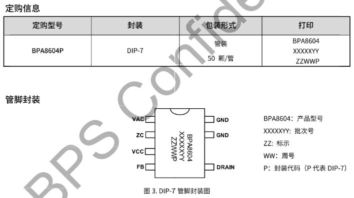 封装特点: DIP-7比标准DIP-8少一脚,增加DRAIN到GND的爬电距离,适合高压潮湿环境。